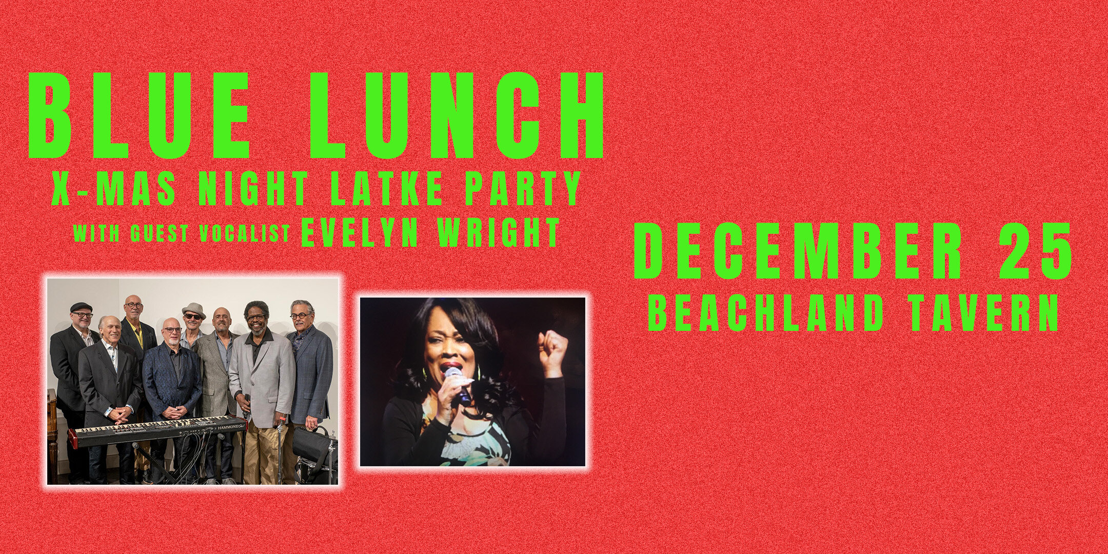 This year, Chanukah will be over before Christmas Night, but you can celebrate whatever holiday you like, or none at all, with Blue Lunch and Evelyn Wright at the Beachland Tavern!