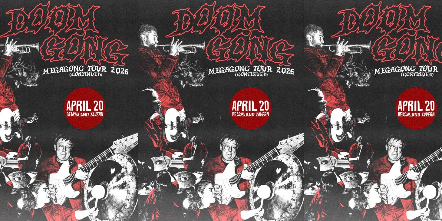 Having amassed a catalogue of 3 rock opera-esque LP’s, DOOM GONG, Dream Behemoth and MEGAGONG, and 1 Live album, Live at the Whirling Tiger, in only 3 years, DOOM GONG has quickly become a mainstay of the psych scene in the U.S. and abroad, having performed their enigmatic and seamless live shows alongside the likes of Amyl and the Sniffers, The Black Angels, BADBADNOTGOOD, Allah Las, King Buffalo, Bass Drum of Death, Death Valley Girls, HOLY WAVE, among many others. The denim assemblage also performs at many national and regional festivals across the continent including Treefort Music Fest (US), Sled Island (CAN), Offbeat Music Fest (US), Purple City Music Festival (CAN), Big Stomp (US) Back Alley Ballyhoo (US), Swampfest (CAN), Expansion Psychedelic Festival (US), Moonshiners Ball (US), and Jorts Fest (US).